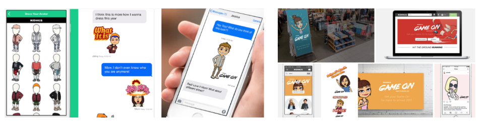 At Huge, I created "KidMoji"; a retail experience that brings kids together with personalized avatars that they can use to communicate with parents, find new styles, and shop together. We found that Back To School shopping is a MAJOR painpoint for both parents and kids. More parent-child fights break out on that day than any other. As we discovered, it’s partly because kids and parents are already tense about the summer ending combined with parents spending money and yearning for their kids not to change and get older. And for the kids, being in a store shopping for clothes is the last place they want to be on that day. I responded by creating “Game On”; an SMS interaction to bring them together and communicate with some fun and lightness. Now, instead of ending the day not talking, they talked more via text IN THE STORE. Through a partnership with Snap, it allows Moms to shop for Back to School clothes with their kids using those avatars in store to get great deals. It raised transaction value by 13% adding cross-selling and upselling opportunities and raising revenue by 10-30%.