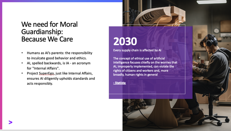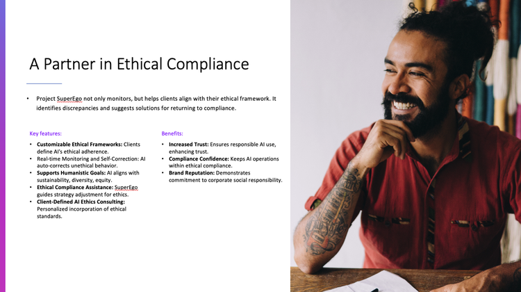 Who says AI isn’t self aware? I created a platform proposal that is “IA or AI” meaning Internal Affairs for AI. It’s purpose; to scan itself. As we all know, AI can unconsciously perpetuate and amplify biases. This can damage a brands credibility and reputation. “SuperEgo” acts as a safeguard for a companies own AI practices to make sure it is conforming to their own corporate code of ethics and best practices. It is the keeper for ethical AI practices including making sure that is not behaving or abetting in ways that counteract diversity /inclusive practices and codes of conduct etc of the company that deploys it. It scans for bias in language or interactions. It acts as an add-on service that gives the company piece of mind in their particular adopted AI system.