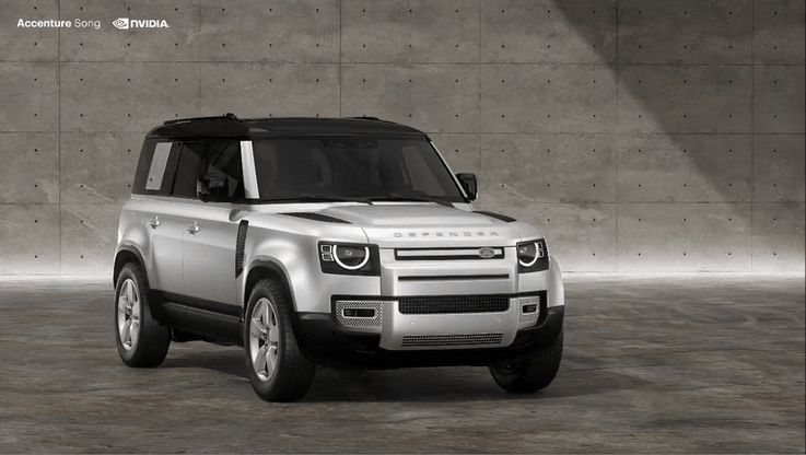 Partnered with Nvidia. Using NVIDIA's Omniverse platform to generate highest fidelity Defender vehicles from computer-aided design data for marketing purposes. Coupled with the NVIDIA Edify-powered generative AI micro service, we enabled the creation of cinematic 3D environments via conversational prompts. The result is a fully immersive 3D scene, harmonizing realistic, generated environments with a digital twin of the Defender vehicle.