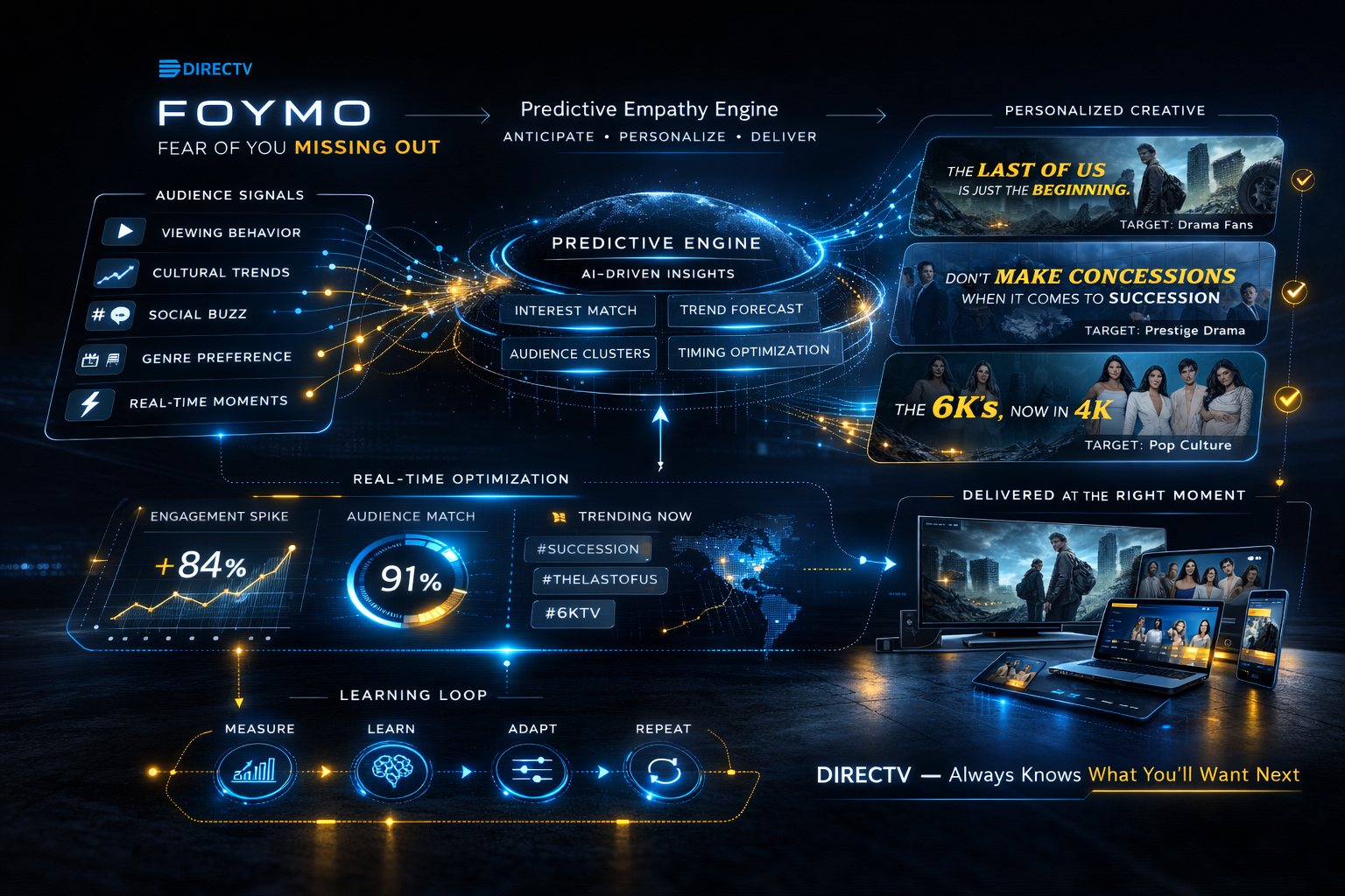 Created #FOYMO idea for DIRECTV to capture the anxiety viewers feel in the fragmented streaming landscape, the sense that everyone else is watching something you are not.